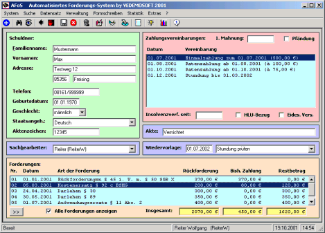 Übersicht über alle Forderungen von