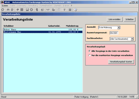 erloschenen Forderungen) dar. Dabei kann der Benutzer nach der Erstellung der
